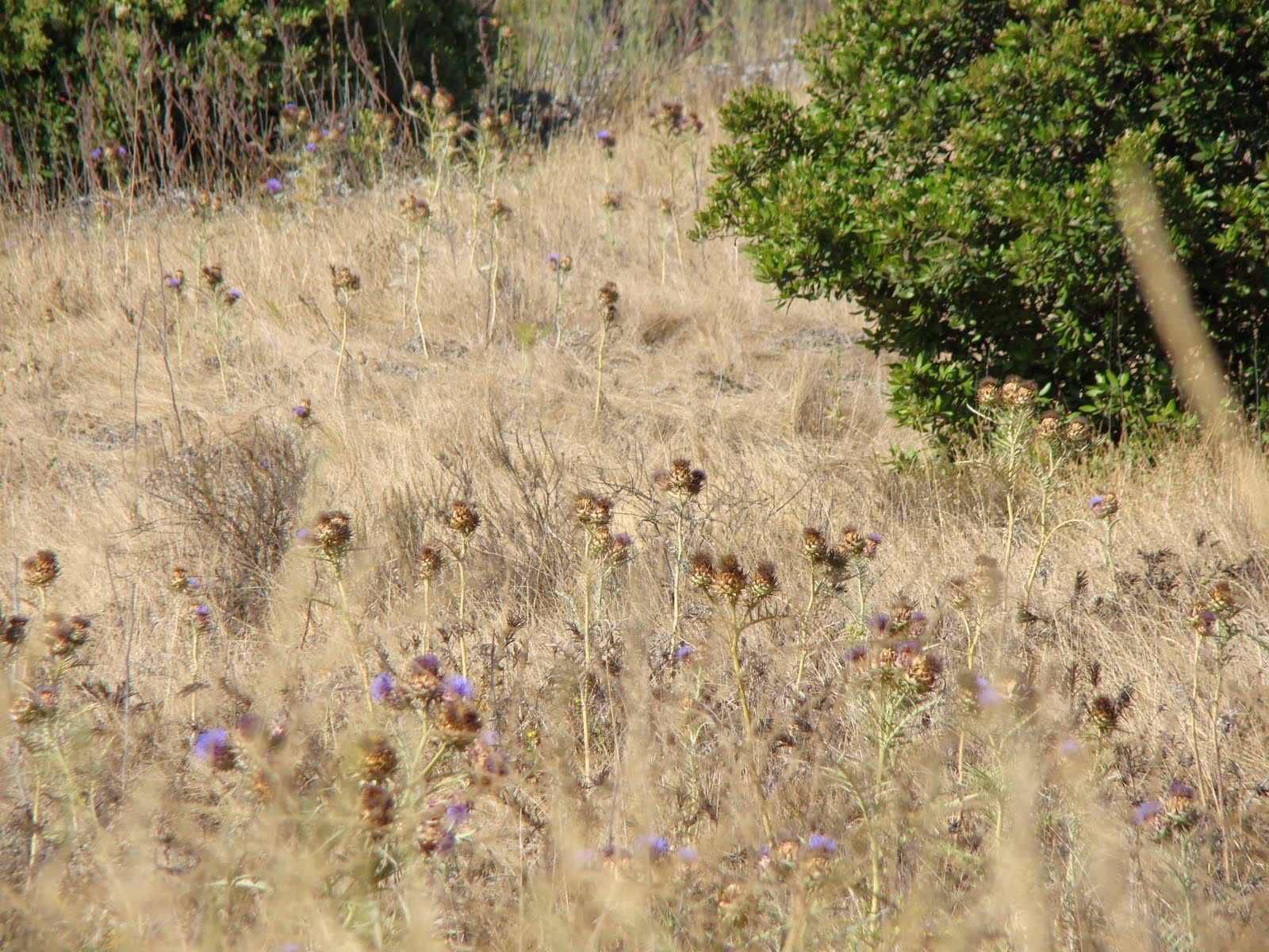 The next morning we set out to collect our grandson Ayden for a weekend at our home. Along the way, I spotted big stands of wild artichokes. They’re easy to identify by the distinctive color of the blooms, and the height of the plant.