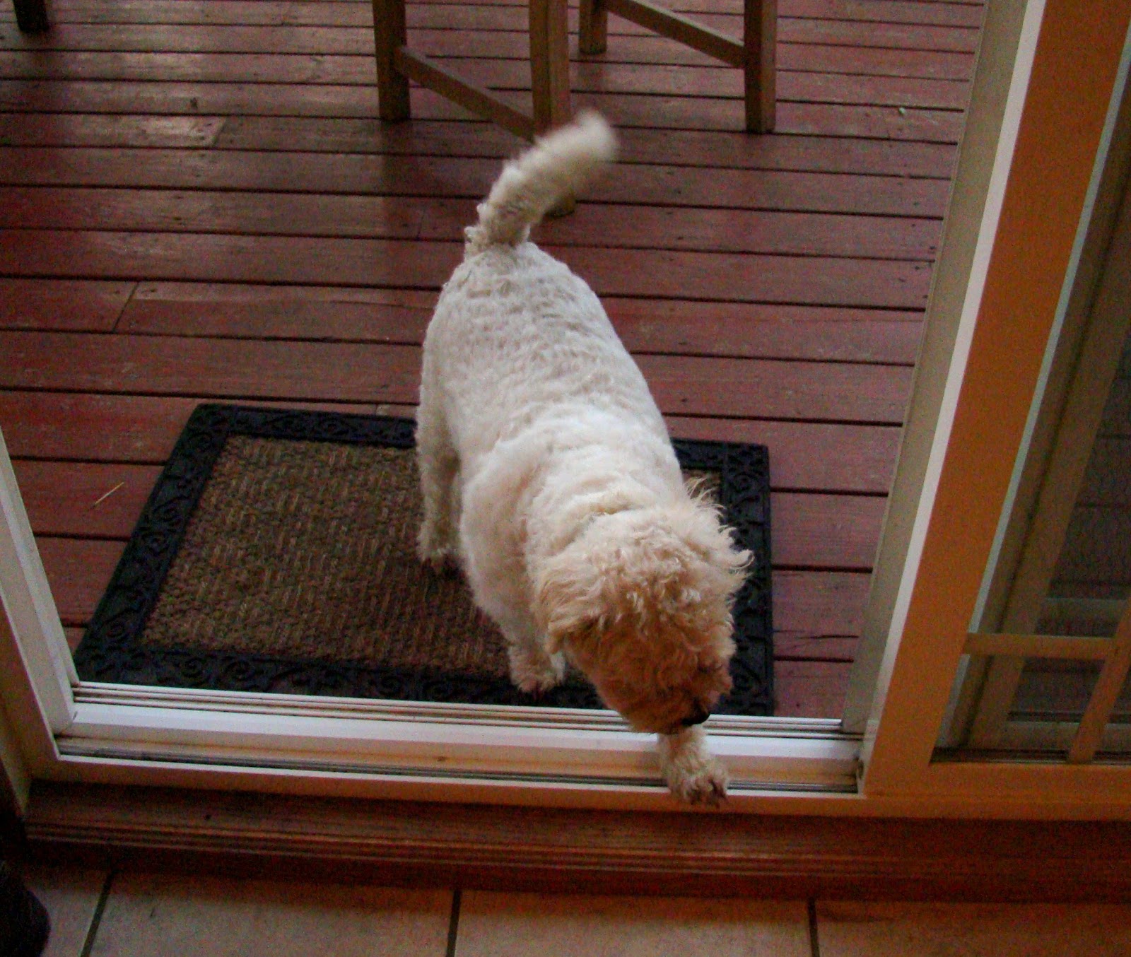 My dog Doc took a nasty spill this week. Coming in from our deck on a rainy day, he spun out on the wet floor in our kitchen, slid, and wound up splayed out on the hard tile in a heap. Being a tough little guy, he shook it off and resumed his mission (probably a nap on the cozy green pillows on the living room floor).