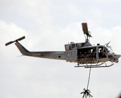 As we passed through Camp Pendleton, traffic stopped. To our right, on a strip of land between the freeway and the ocean, a Marine helicopter hovered. “We could use one of those right now,” he ventured, as traffic once again came to a stop.