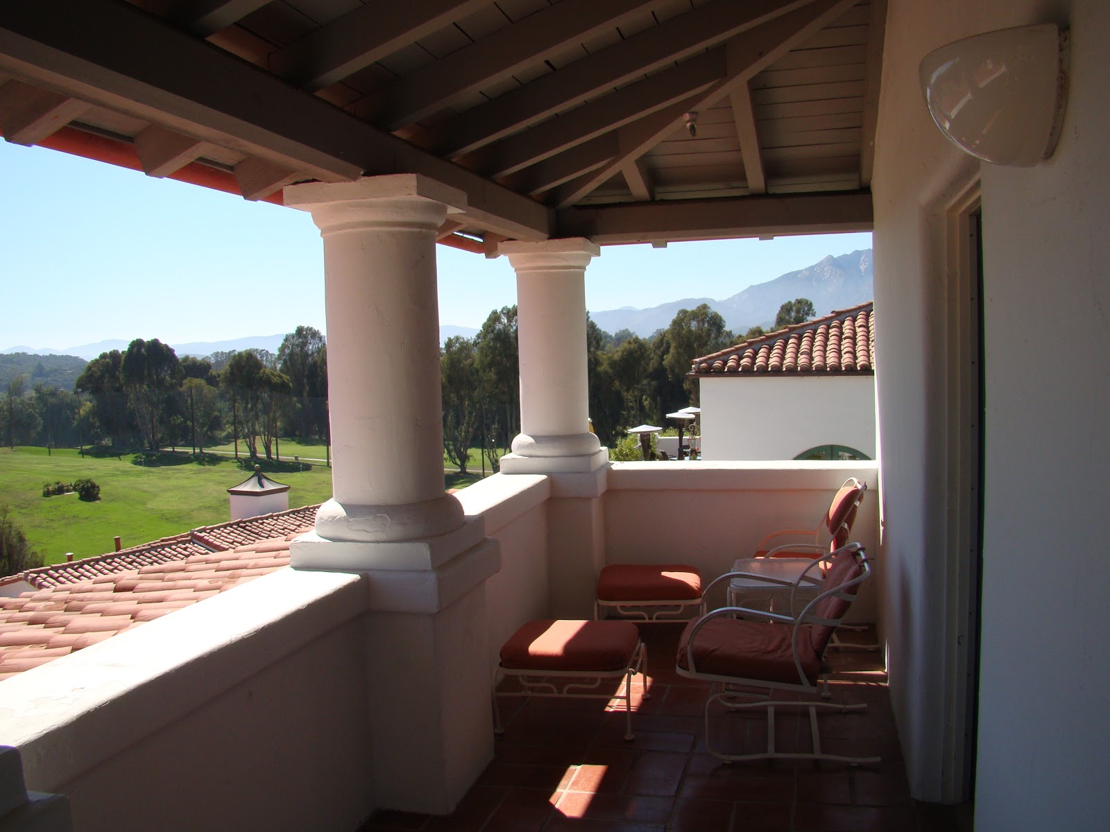 Our room was edged by a balcony that offered a gaping view of the golf course and the hills beyond.