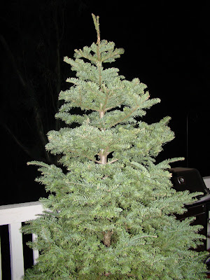 Then he hauled the tree outside, onto our back deck. It was to meet a gruesome fate the next day.