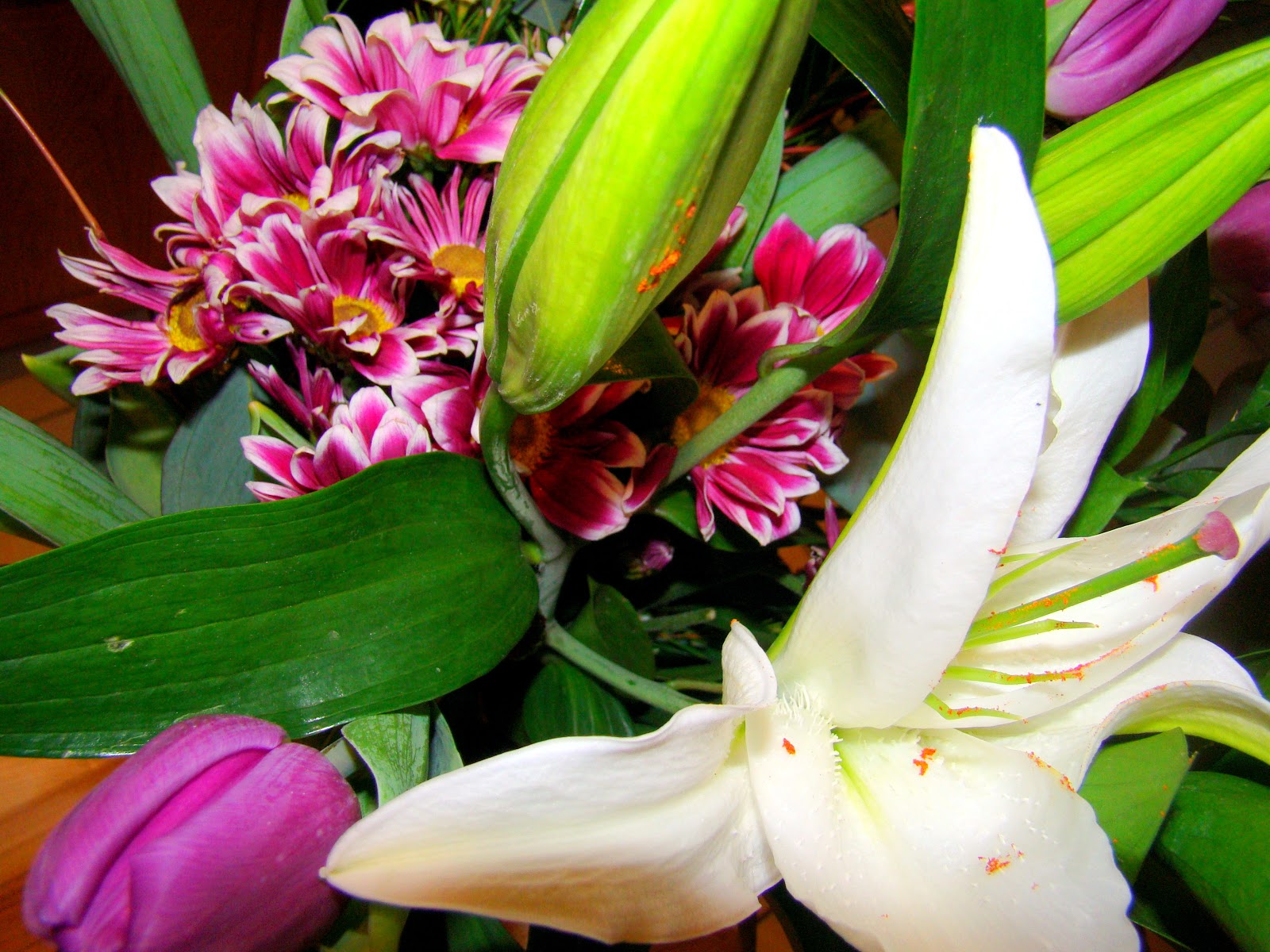 But these flowers would not cooperate. The tulips were striking for shorter stems. The lilies refused to yield their pistils without staining my fingers, the butcher block, and their own petals. The eucalyptus leaves were plotting a takeover, overflowing the vase. I trimmed and tucked, untucked, trimmed, retucked, until the joy of creating had evaporated. And the stems had ended up shorter than I planned.