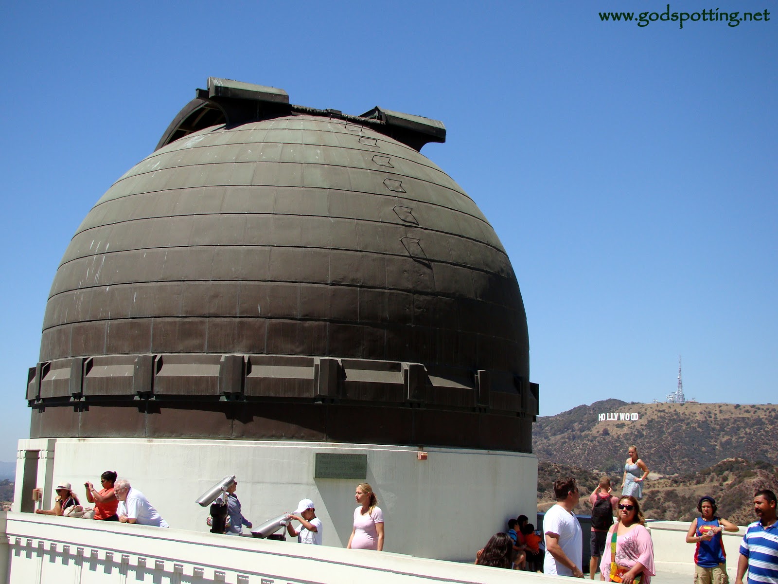 It’s a popular place, so you’re likely to park down the road, then walk up the hill. It’s a beautiful, dusty, hot walk in the summertime, but as you approach the observatory, you come around a corner and there, up on the hill across the way, an icon is suddenly in view: the famous “Hollywood” sign.